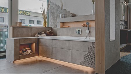 Ein weiteres Highlight am Standort Dillenburg ist die großzügige Auswahl an fugenlosen Wandverkleidungen. Wer seinem Bad eine moderne und besondere Note geben möchte, wird hier fündig. Fugenlose Elemente wie Duschrückwände, aber auch Komplett-Badezimmer mit fugenlosen Verkleidungen sind nicht nur optisch ein Hingucker, sondern sie überzeugen auch durch hygienische Vorteile, da weniger Flächen zur Ansammlung von Schimmel und ähnlichem vorhanden sind. Gleichzeitig sorgen fugenlose Wandverkleidungen für eine ruhige und entspannte Optik und geben insbesondere kleinen Badezimmern mehr Raum.